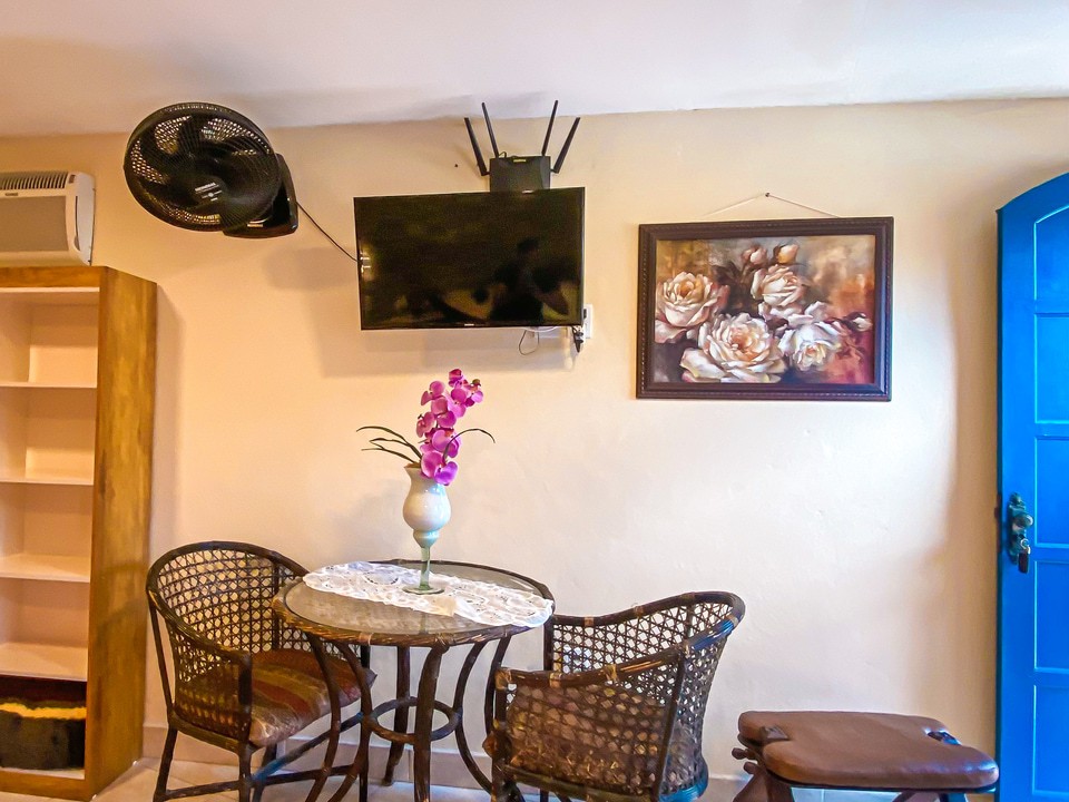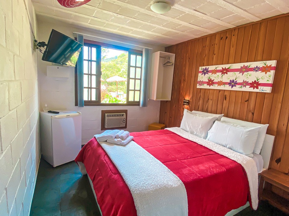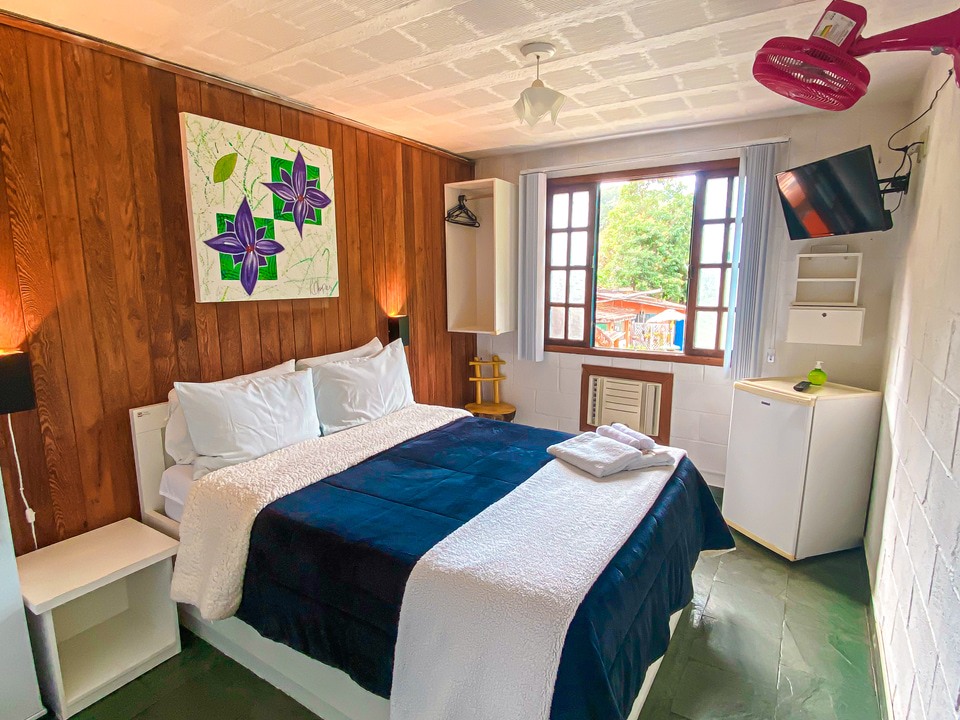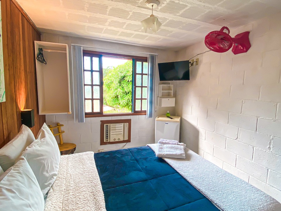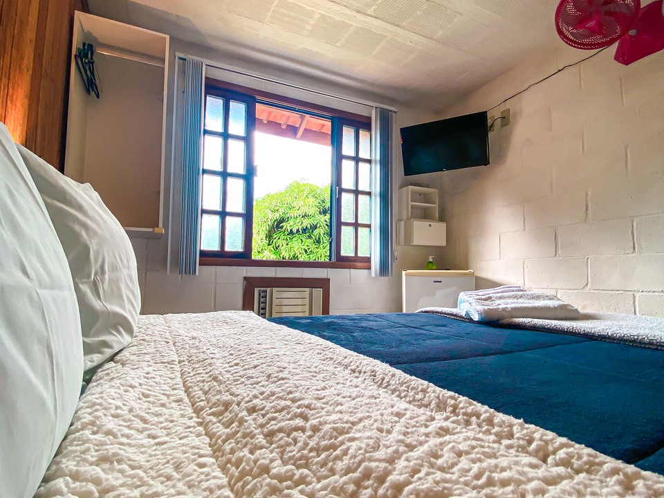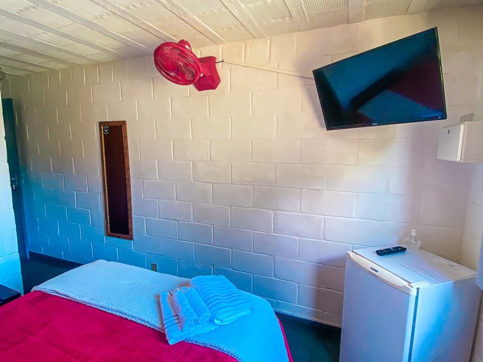 Nossas suítes e chalé são simples e possuem TV com sinal à cabo, frigobar e ventilador sendo todas com ar condicionado, nossas camas são tamanho padrão de casal e possuímos secador de cabelo nas suítes e no chalé. Melhor que falar que tal olhar as fotos? Escolha uma categoria que venha compartilhar nosso ambiente familiar.