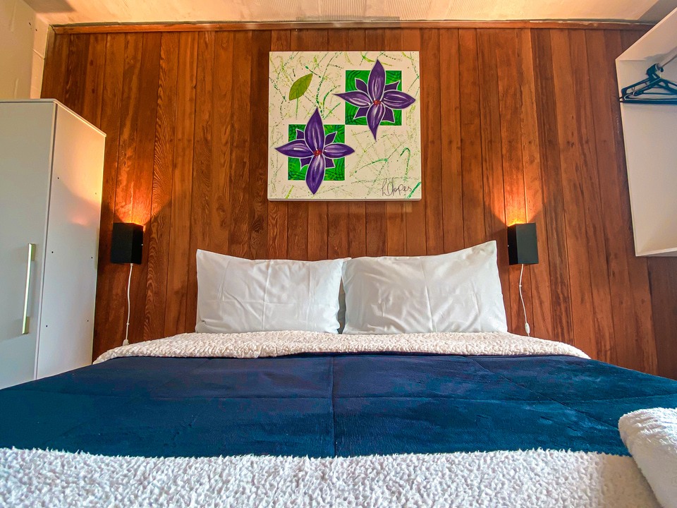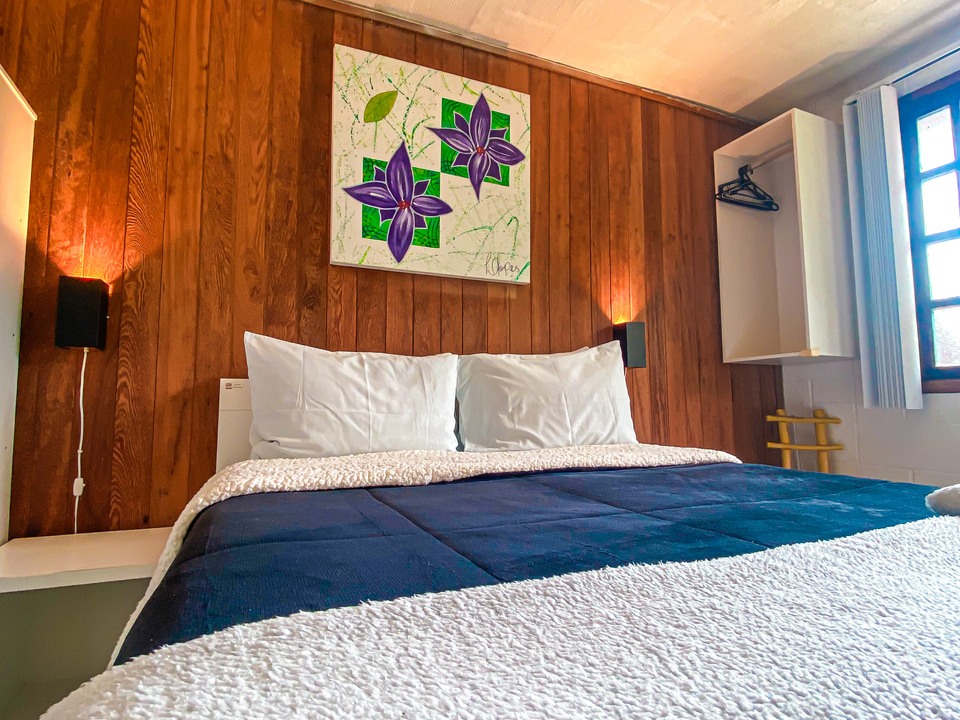 Este chalé exclusivo para casal ou duas pessoas dormindo na mesma cama de casal.