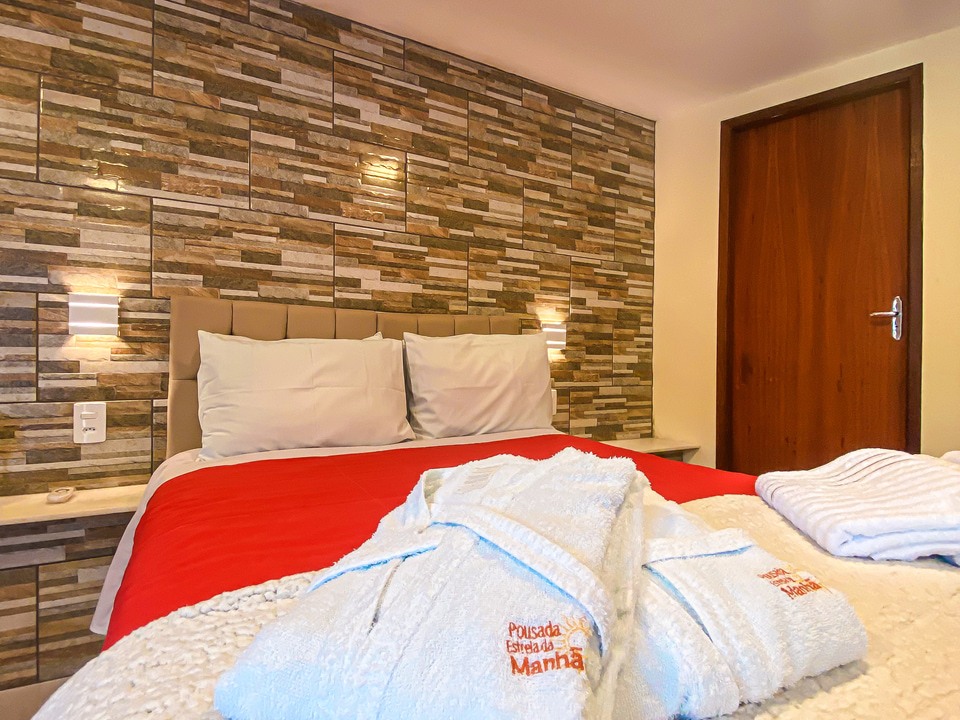 Suítes ficam no Andar Térreo da pousada, sendo elas uma ao lado da outra.